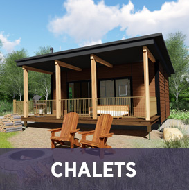 Deux types de chalets de villégiature sont proposés avec 2 chambres à coucher et déjà en démonstration sur le site. N’hésitez pas à nous contacter pour découvrir les possibilités d'acquisition d’un terrain et d’un chalet dès maintenant.